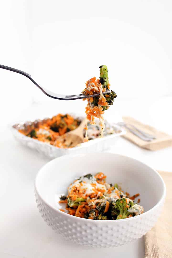This casserole is not only vegan and non-vegan friendly all at once, it’s really easy to make and stores well for leftovers. Lu and I threw some cooked chicken on top and had it for dinner the night I made this.